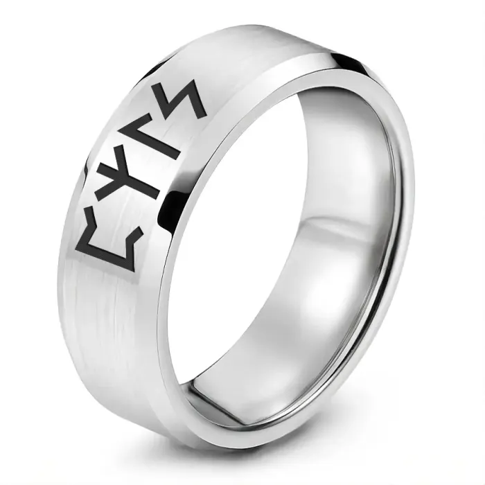 Кольцо с рунической формулой «Ясновидение» из нержавеющей стали с лазерной гравировкой.