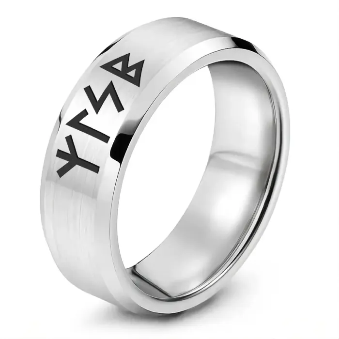 Кольцо из нержавеющей стали с лазерной гравировкой рунической формулы.
