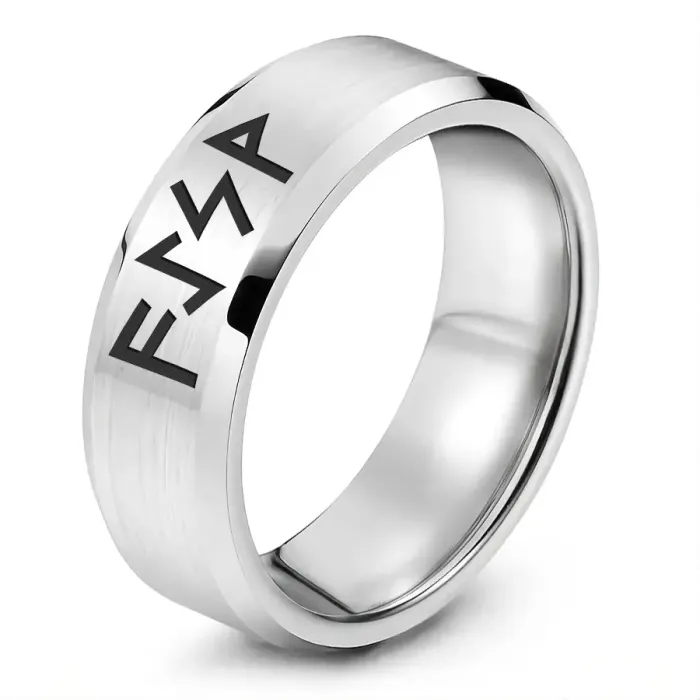 Кольцо с рунической формулой для сувенирного или личного использования. Изготовлено из нержавеющей стали с лазерной гравировкой.