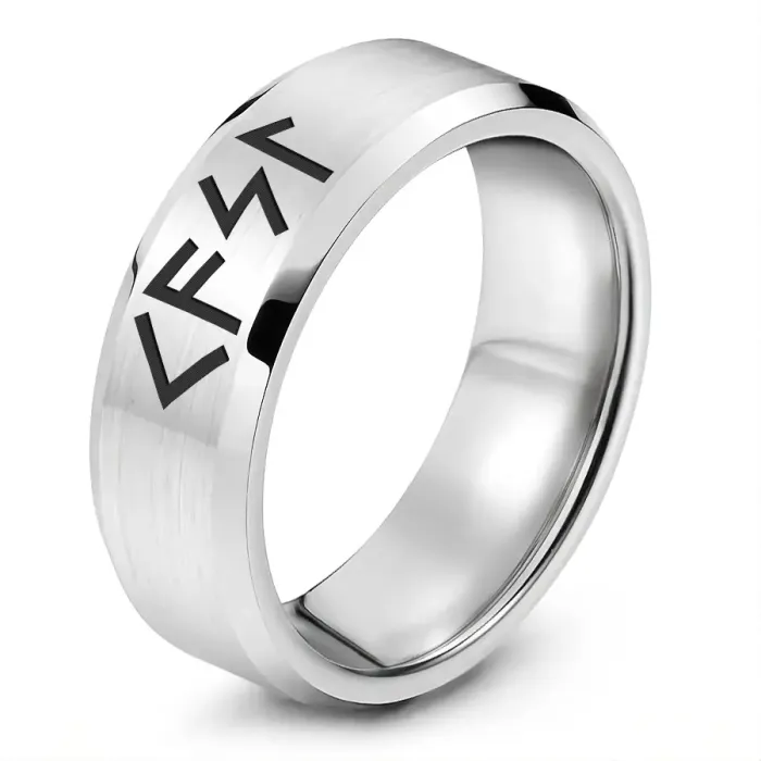 Кольцо с рунической формулой «Энергия творчества» — сувенирное украшение из нержавеющей стали с лазерной гравировкой.