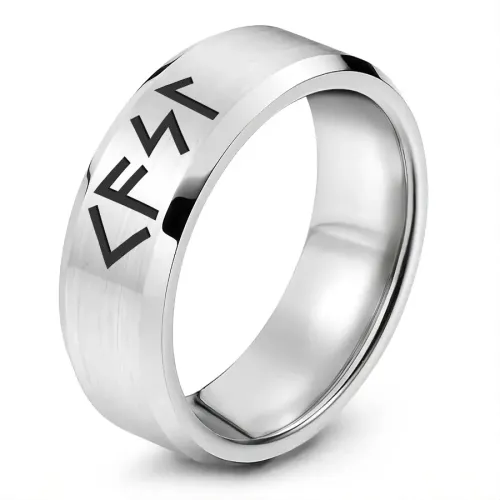 Кольцо с рунической формулой «Энергия творчества» из нержавеющей стали с лазерной гравировкой.