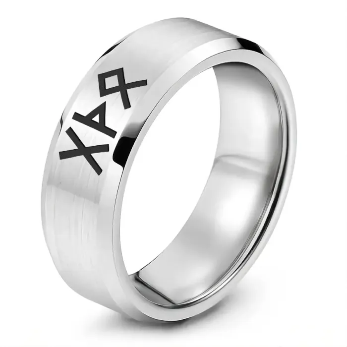 Кольцо с рунической формулой «Гармоничные отношения» изготовлено из нержавеющей стали с лазерной гравировкой.