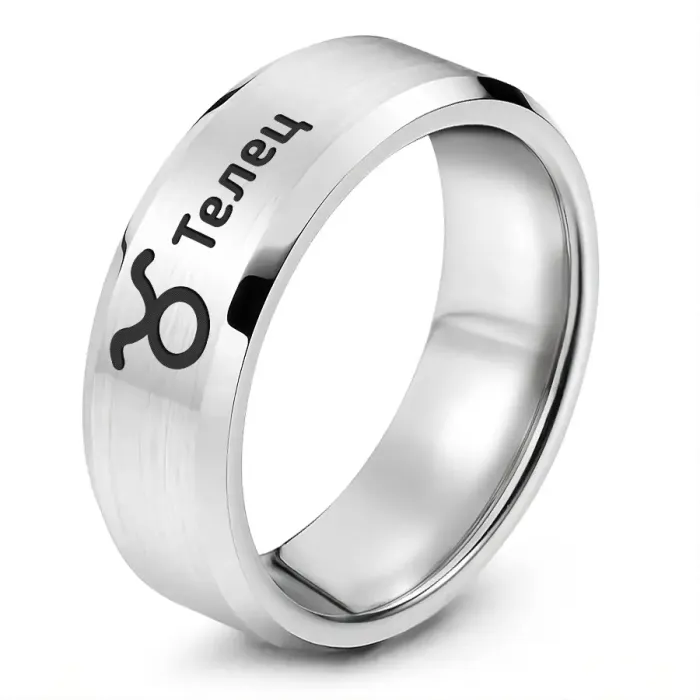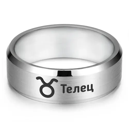 Кольцо из нержавеющей стали с лазерной гравировкой знака зодиака Телец.