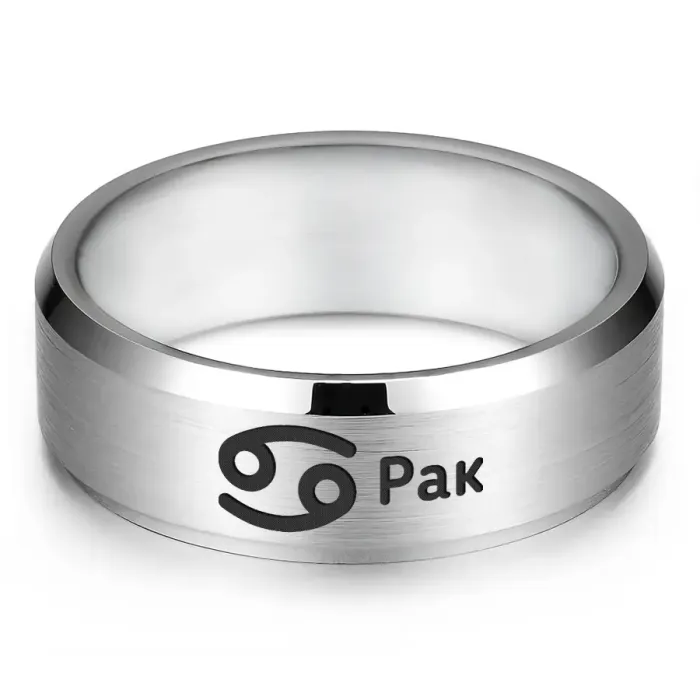 Кольцо из нержавеющей стали с лазерной гравировкой знака зодиака Рак.