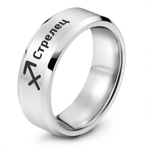 Кольцо из нержавеющей стали с лазерной гравировкой знака зодиака Стрелец.