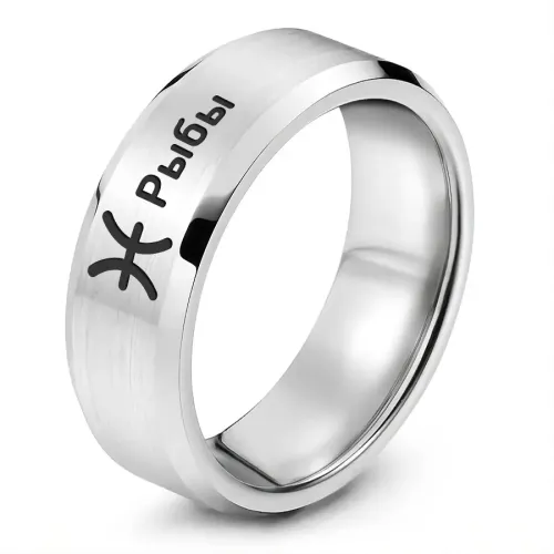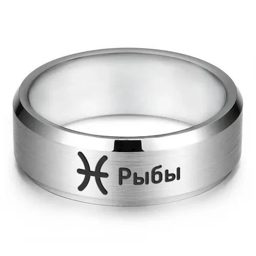 Кольцо из нержавеющей стали с лазерной гравировкой знака зодиака Рыбы.