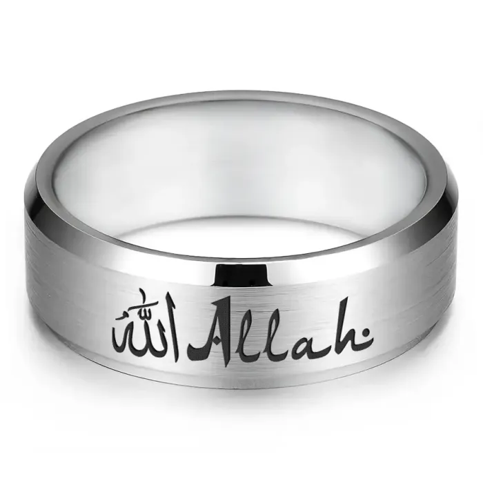 Мусульманское кольцо из нержавеющей стали с лазерной гравировкой надписи.