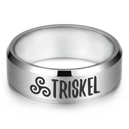 Кольцо из нержавеющей стали с лазерной гравировкой в виде кельтского символа трискель.