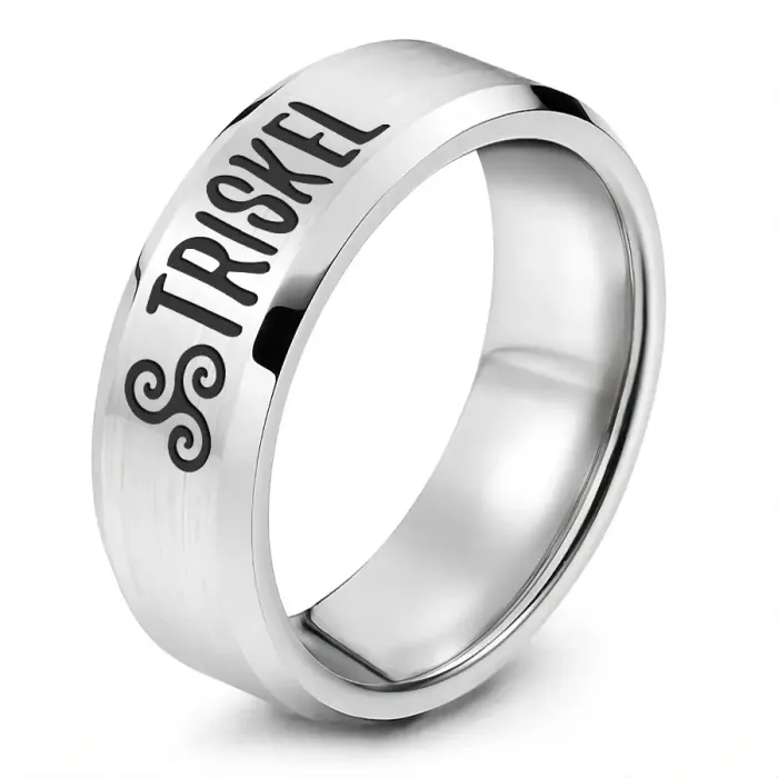 Кольцо из нержавеющей стали с лазерной гравировкой в виде кельтского символа трискель.