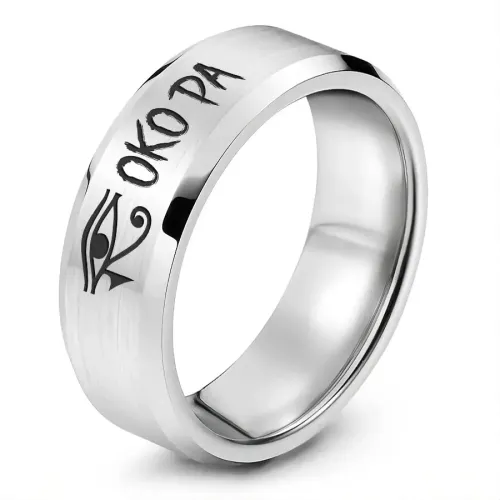 Кольцо Око Ра — сувенирный аксессуар из нержавеющей стали с лазерной гравировкой древнеегипетского символа.