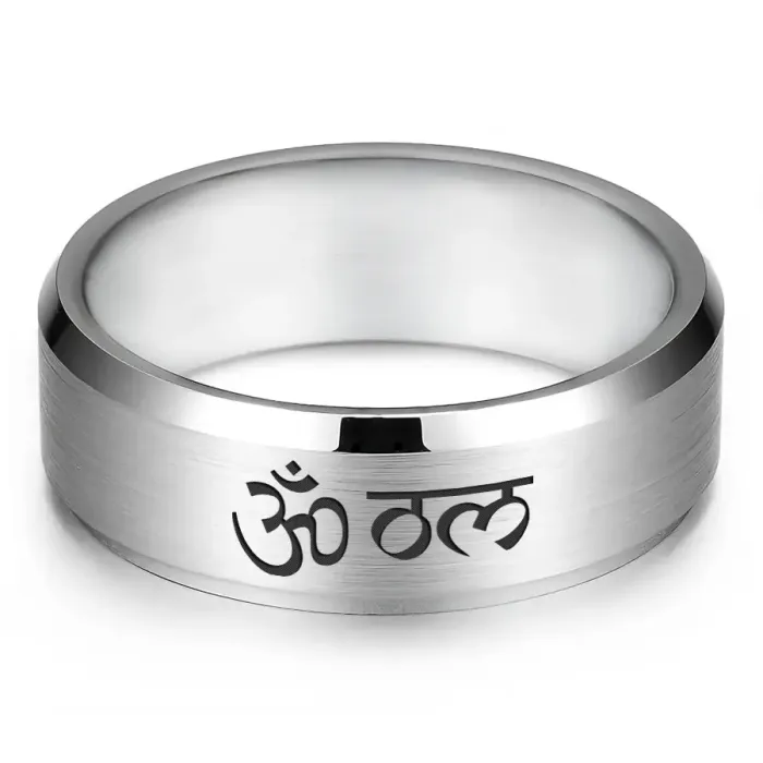 Кольцо из нержавеющей стали с лазерной гравировкой символа Ом.