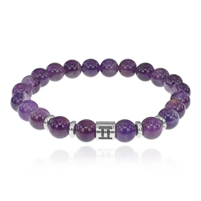 Стрейч-браслет с символом знака зодиака Близнецы, выполненный из натурального аметиста.