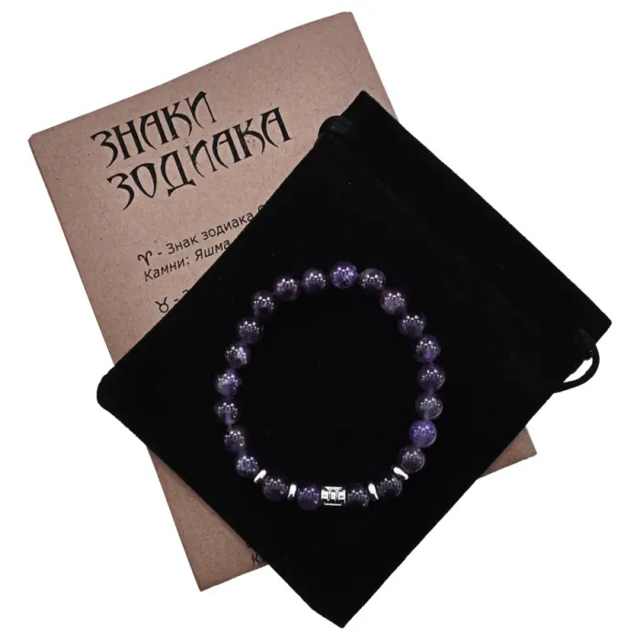Браслет Знаки Зодиака - Близнецы с нат.камнем Аметист 8мм