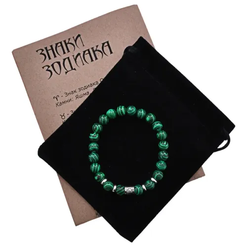 Браслет Знаки Зодиака - Весы с синт.камнем Малахит 8мм BSZ01-07