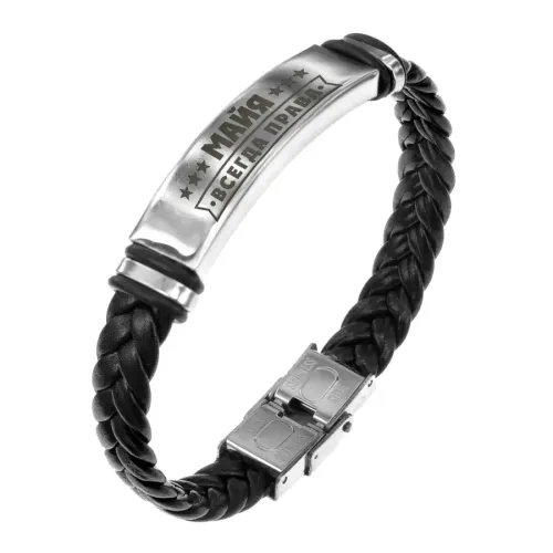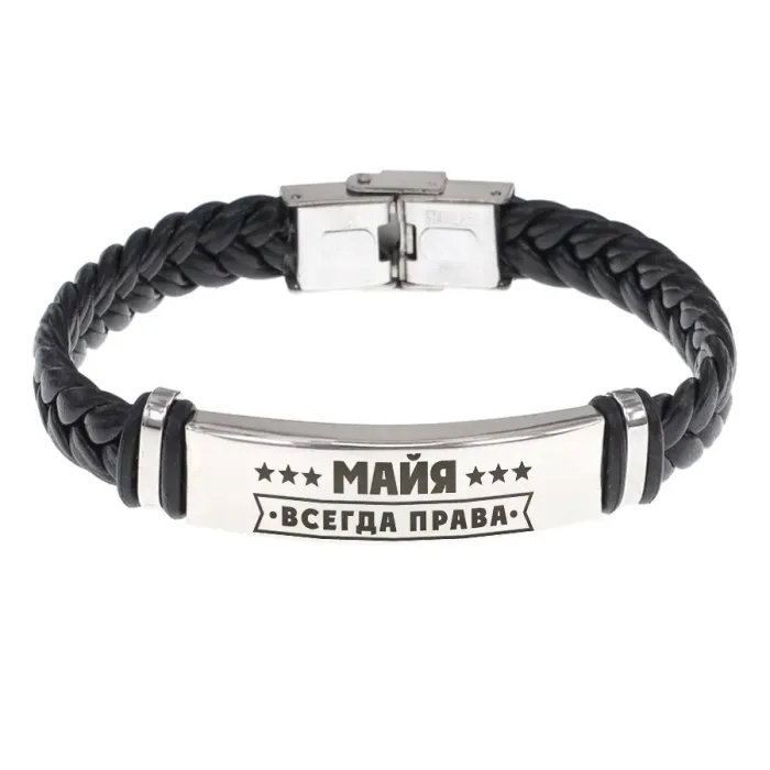 Именной браслет с гравировкой. Изготовлен из кожи и нержавеющей стали.
