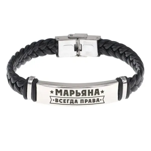 Именной браслет с гравировкой из кожи и нержавеющей стали.