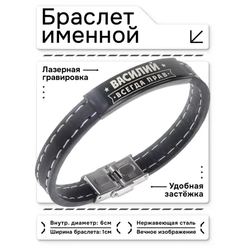 Кожаный браслет с именной гравировкой «Всегда Прав».