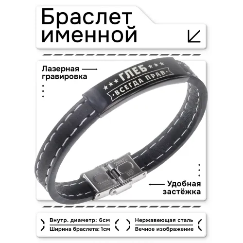 Именной браслет Глеб Всегда прав BSKR2-284