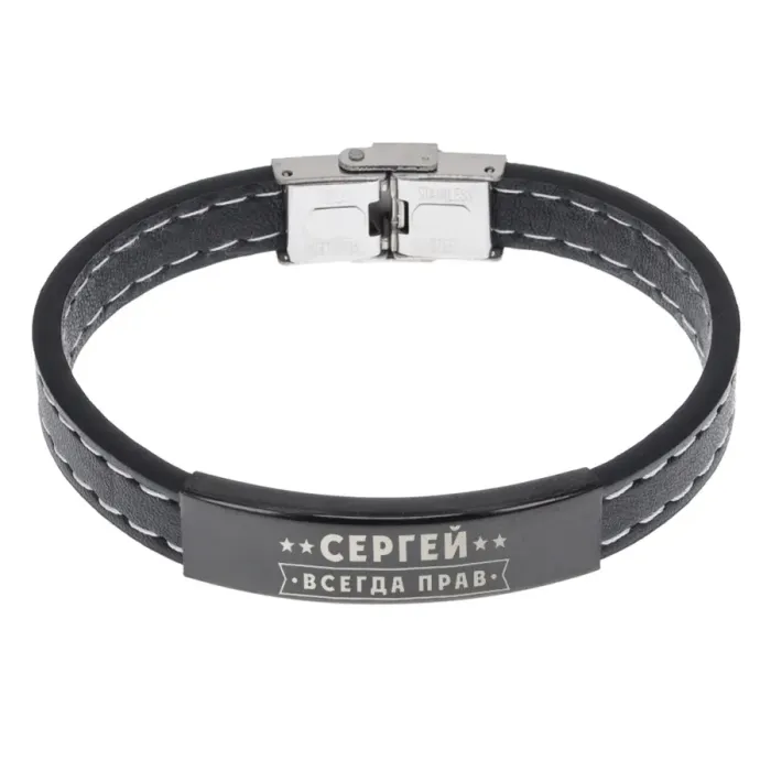 Именной браслет с гравировкой 'Всегда Прав' из кожи и нержавеющей стали.
