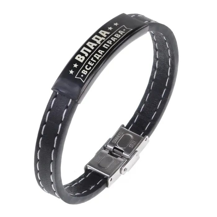Именной браслет из кожи и нержавеющей стали с гравировкой «Всегда Права».