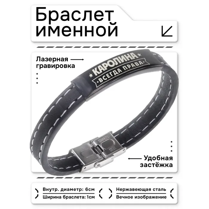 Именной браслет с гравировкой из кожи и нержавеющей стали.