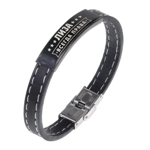Именной браслет с гравировкой 'Всегда права' из кожи и нержавеющей стали.