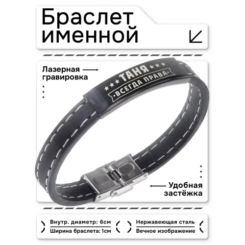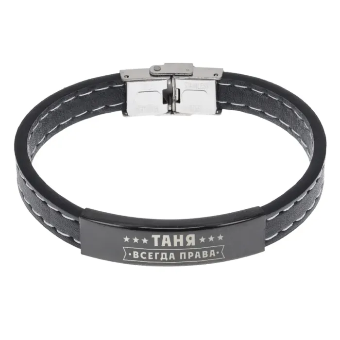 Именной браслет с гравировкой 'Всегда Права' из кожи и нержавеющей стали.