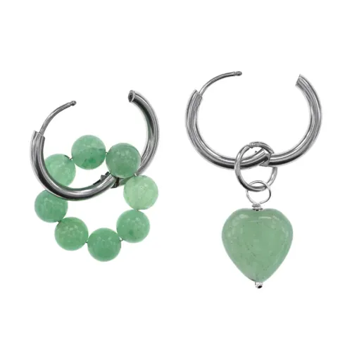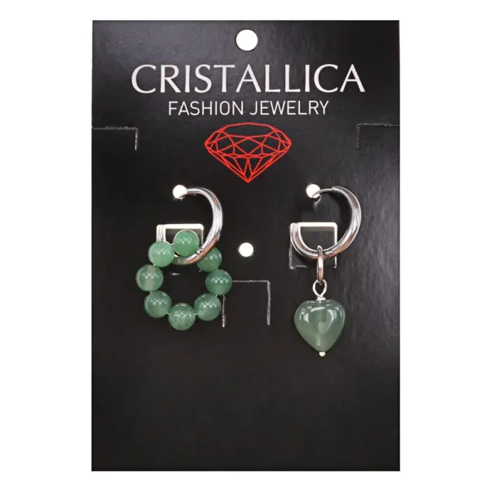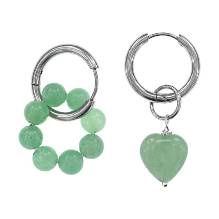 Ассимметричные серьги из гипоаллергенного сплава с натуральным камнем нефрит.