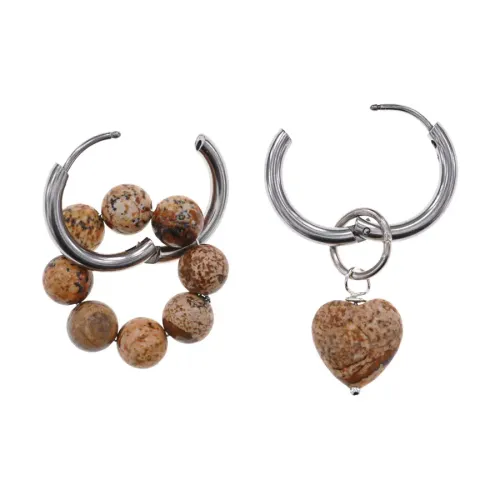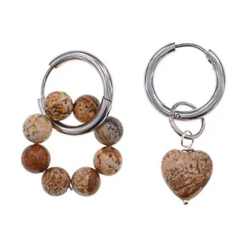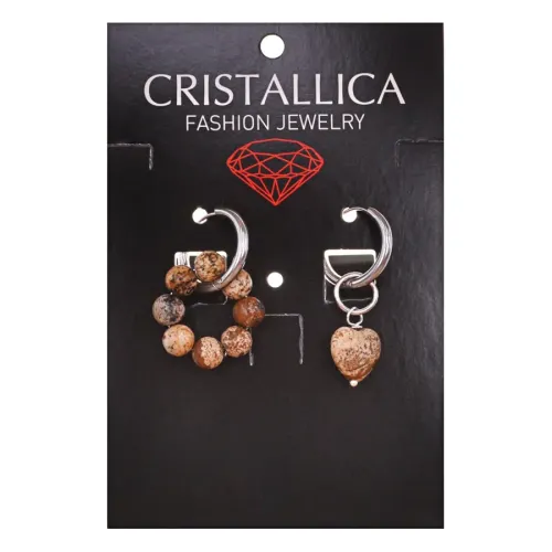 Ассимметричные серьги из гипоаллергенного сплава с натуральным камнем песочная яшма.