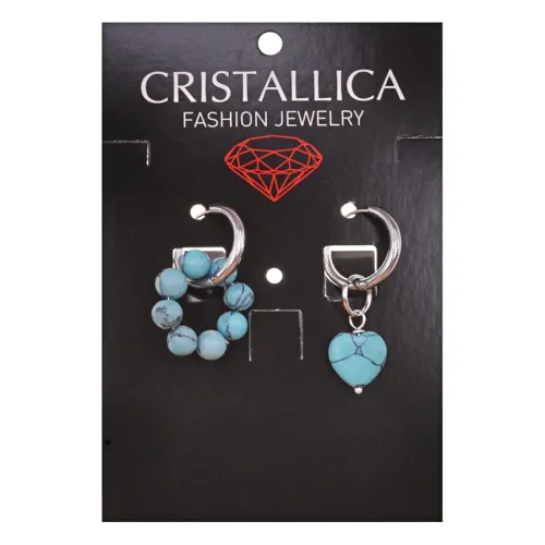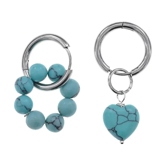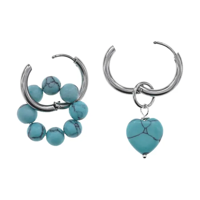 Ассимметричные серьги из гипоаллергенного сплава с синтетическим камнем бирюза.