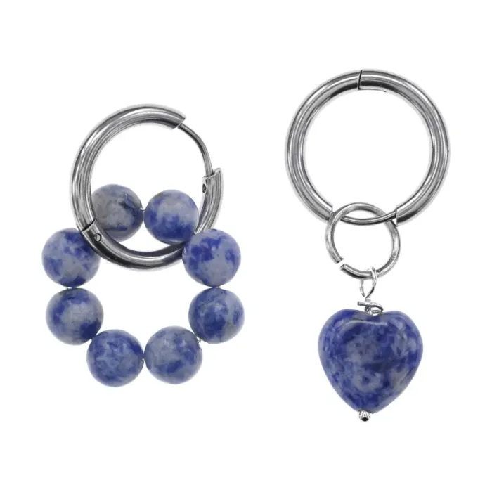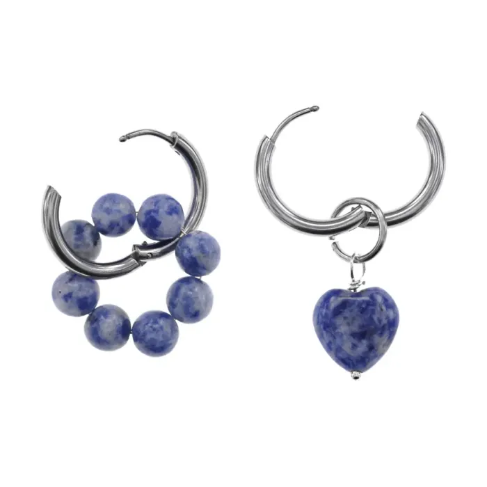 Ассимметричные серьги для ношения. Материал: гипоаллергенный сплав и натуральный камень содалит. Конструкция: швензы типа Конго с подвесками.