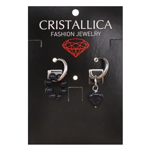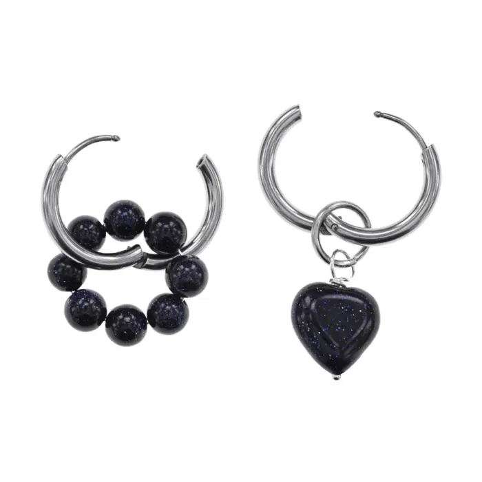 Ассимметричные серьги с синтетическим камнем синий авантюрин на швензах Конго.