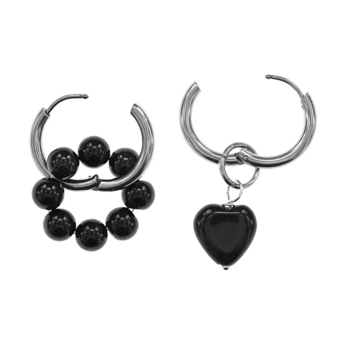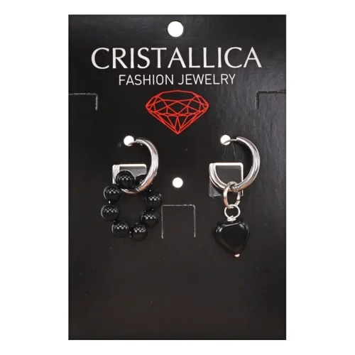 Эти модные ассимметричные серьги коллекции Cristallica станут ярким акцентом любого образа. Изготовленные вручную, они оснащены швензами Конго из гипоаллергенного сплава и украшены натуральным камнем — чёрным агатом.