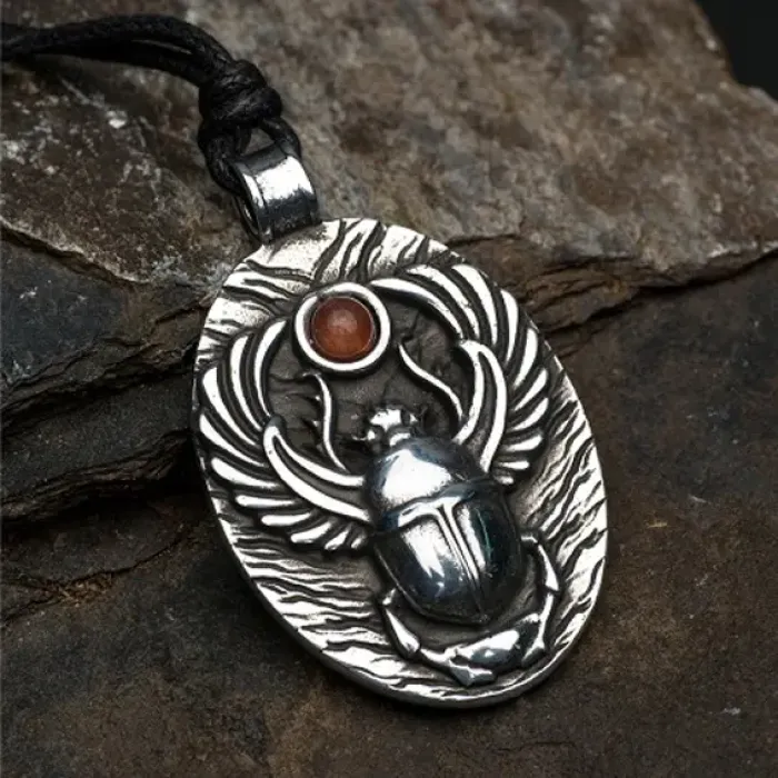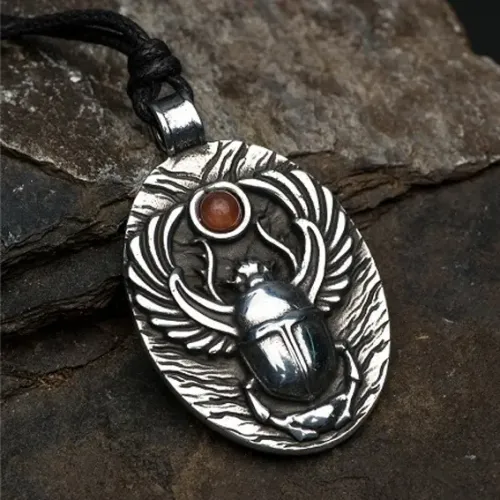 Амулет Скарабей с камнем сердолик, 30х47мм, металлический 72203