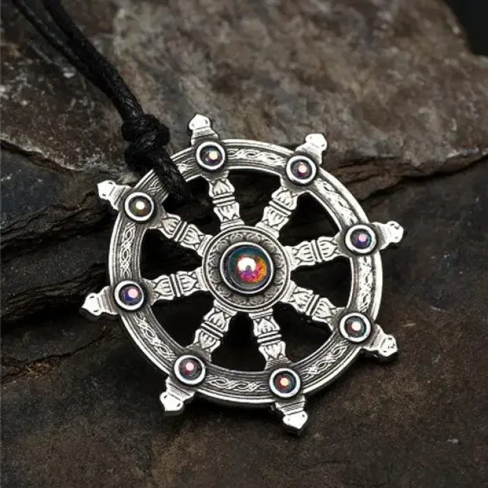 Амулет Колесо Сансары с камнем фианит, 35х35мм, металлический 72206