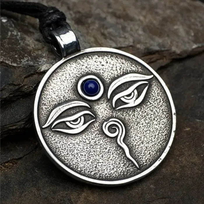 Амулет Глаз Будды с камнем лазурит, 35х42мм, металлический 72207