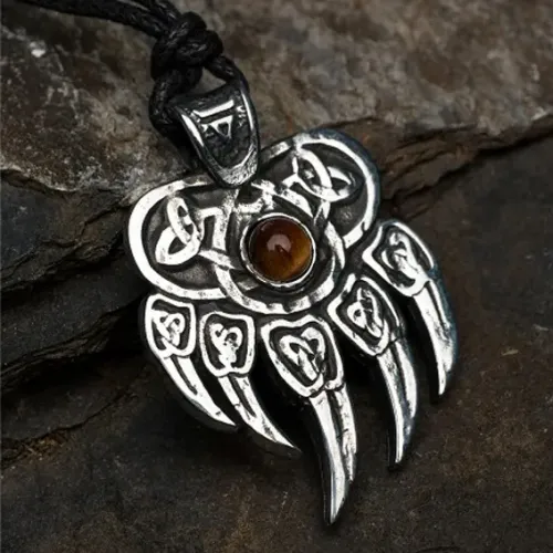 Амулет Печать Велеса с камнем бычий глаз, 30х43мм, металлический 72210