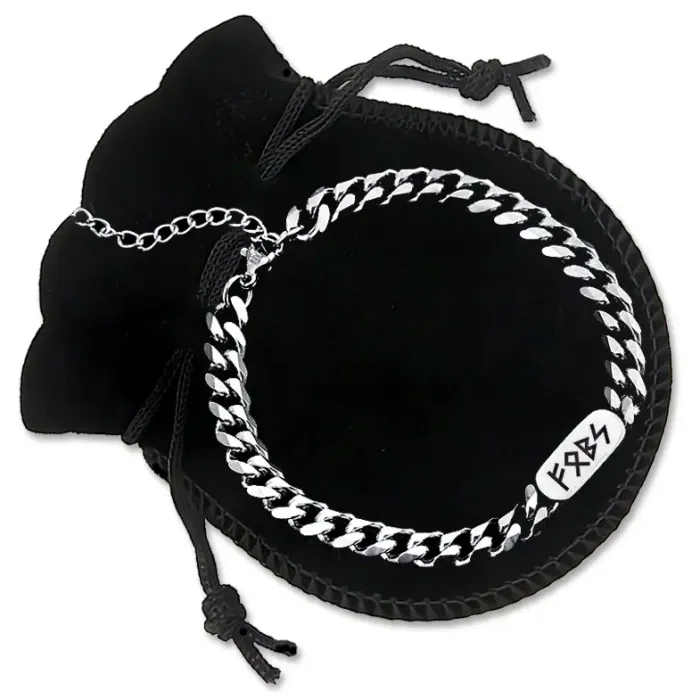 Браслет-цепь из нержавеющей стали с лазерной гравировкой рун.