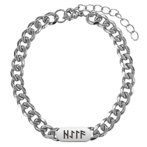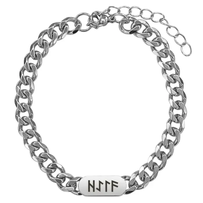 Браслет-цепь из нержавеющей стали с лазерной гравировкой в виде рунической формулы.