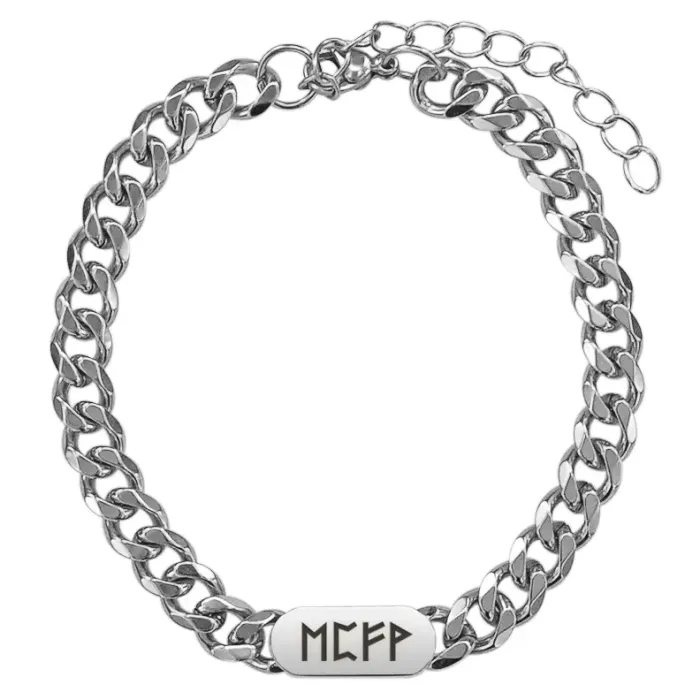 Браслет-цепь из нержавеющей стали с лазерной гравировкой рунической формулы.