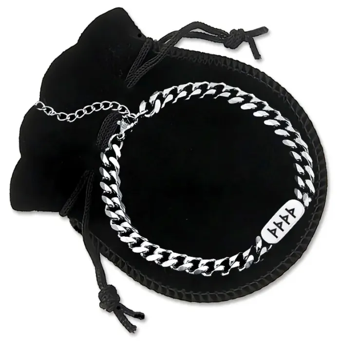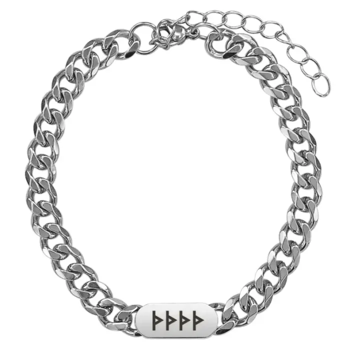Браслет-цепь из нержавеющей стали с лазерной гравировкой руны Турисаз.