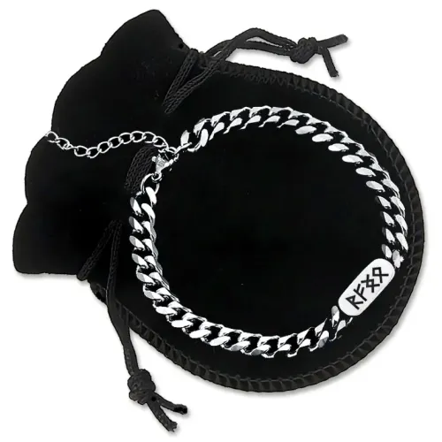 Браслет-цепь из нержавеющей стали с лазерной гравировкой рун.
