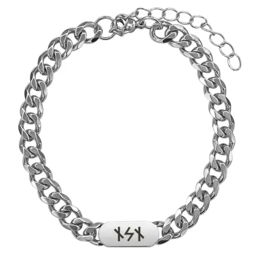 Браслет-цепь из нержавеющей стали с лазерной гравировкой рун Наутиз и Соулу.