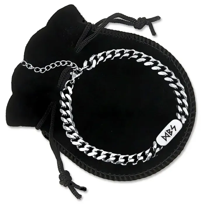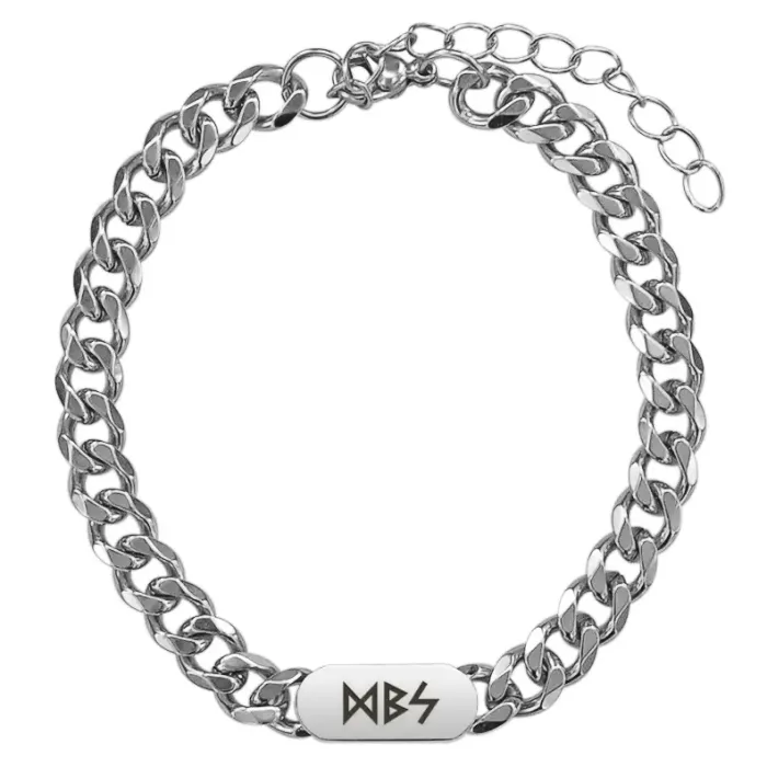 Браслет-цепь из нержавеющей стали с гравировкой рун Дагаз, Беркана и Соулу.