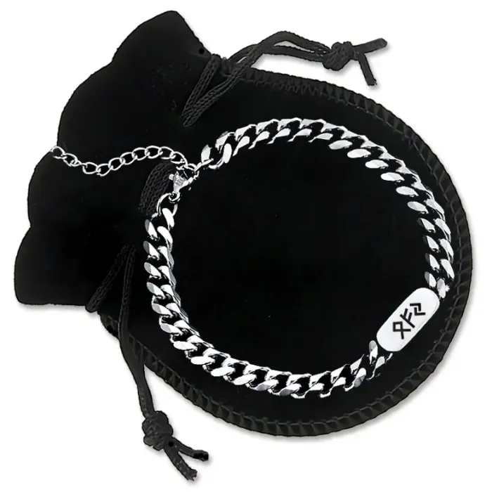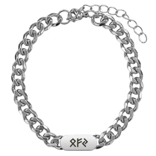 Браслет-цепь из нержавеющей стали с лазерной гравировкой рун Одал, Феху и Йера.