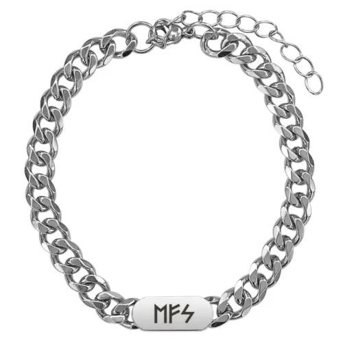 Браслет-цепь из нержавеющей стали с лазерной гравировкой рун Эваз, Феху, Соулу.