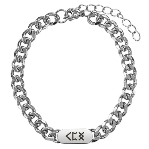 Браслет-цепь из нержавеющей стали с лазерной гравировкой рунической формулы.