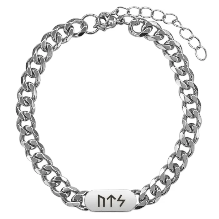 Браслет-цепь из нержавеющей стали с лазерной гравировкой рун Уруз, Тейваз и Соулу.