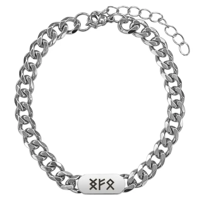 Браслет-цепь из нержавеющей стали с лазерной гравировкой рун.