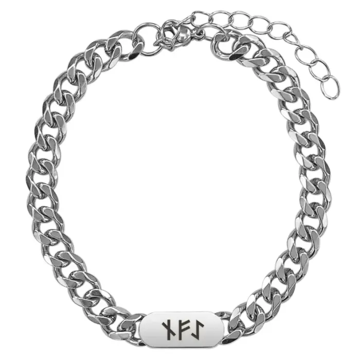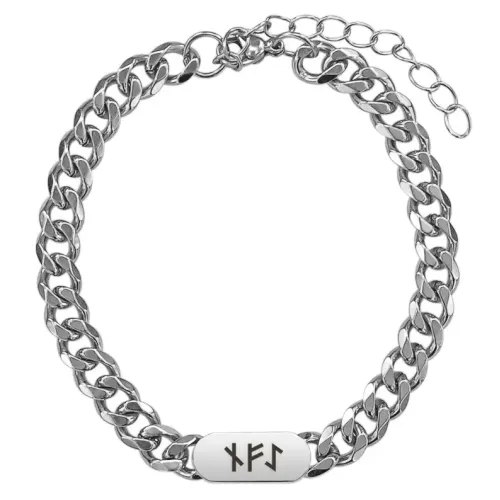 Браслет-цепь из нержавеющей стали с лазерной гравировкой рунической формулы.